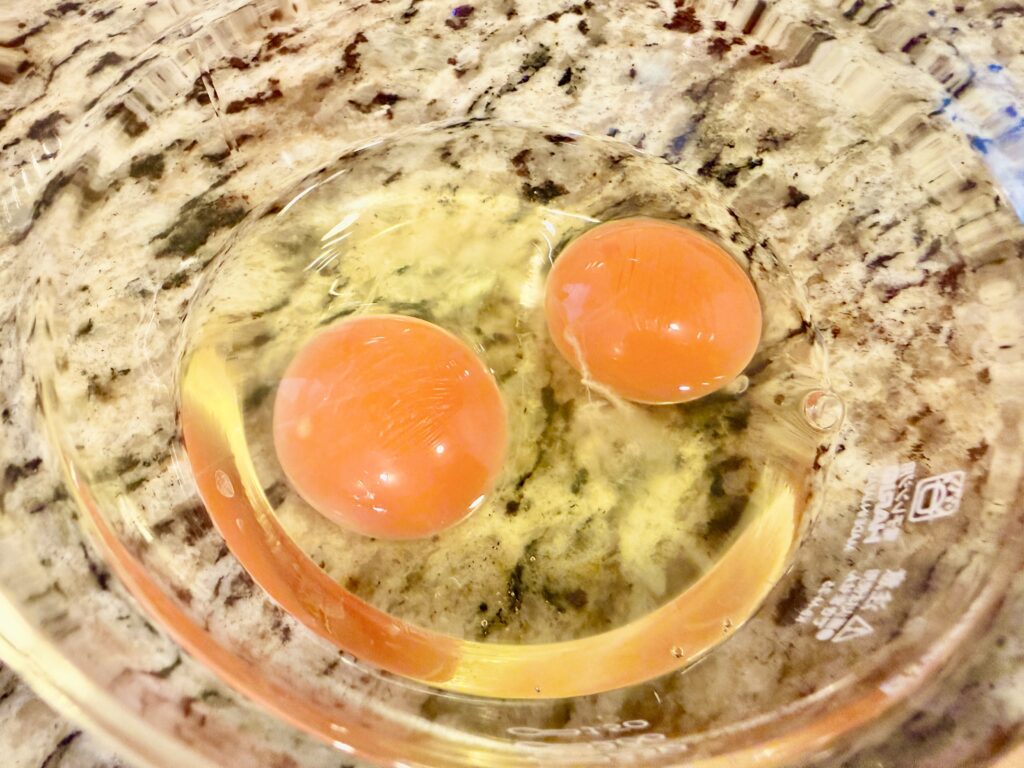 - 卵をボウルに割り、調味料をすべて入れて混ぜる