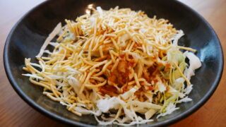 焼肉きんぐの人気メニュー「ベビースターサラダ」をおうちで簡単再現!キャベツとベビースター、焼肉のたれとマヨネーズで5分完成。チキン味・塩味どちらでも美味しいおすすめサラダです。