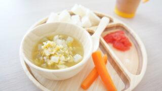 離乳食 離乳食後期(9ヶ月ごろ)|スティックにんじんと野菜スープ 9ヶ月ごろの離乳食後期の記録。スティックにんじん、細かく切った食パン、スイカ、野菜スープを用意した日の体験談です。手づかみ食べを始めた時期の工夫を紹介します。 2025.09.03 離乳食
