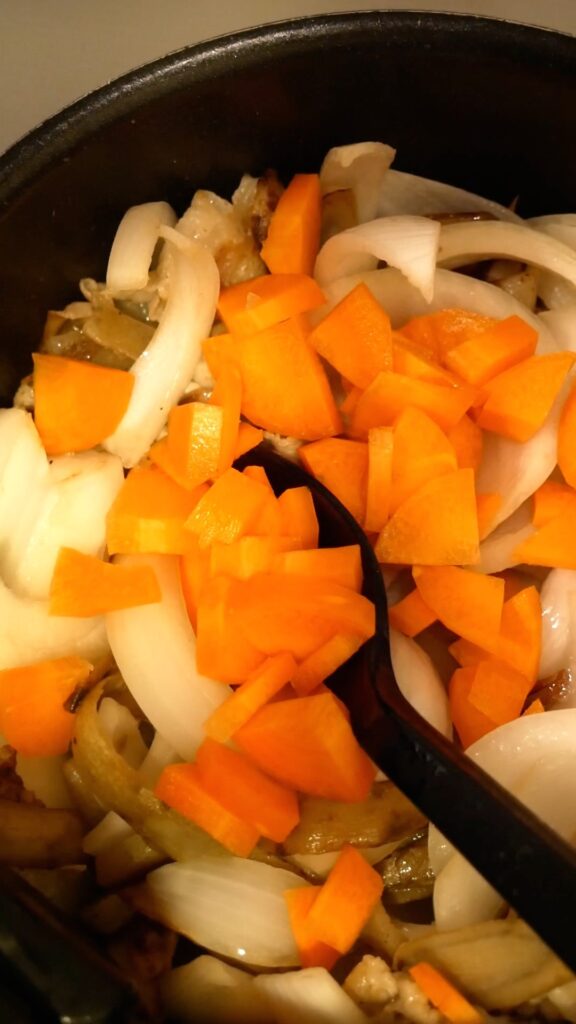 1. 野菜(にんじん・大根・ごぼう・玉ねぎ)を食べやすい大きさに切る。